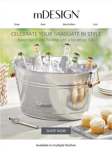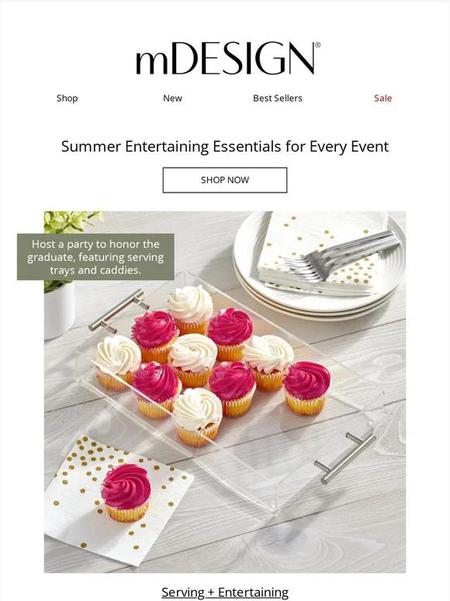 Enjoy the beauty of the outdoors and soak up the sun when entertaining friends and family this summer. Host a party for your graduate, throw a festive barbeque on the Fourth of July, or stay cool in the pool. Adorn picnic tables with elegant trays and boards, keep drinks chilled in stylish beverage buckets, and have utensils ready for guests with convenient cutlery caddies. mDesign is ready to help you style your summer – and it has never been more fun!